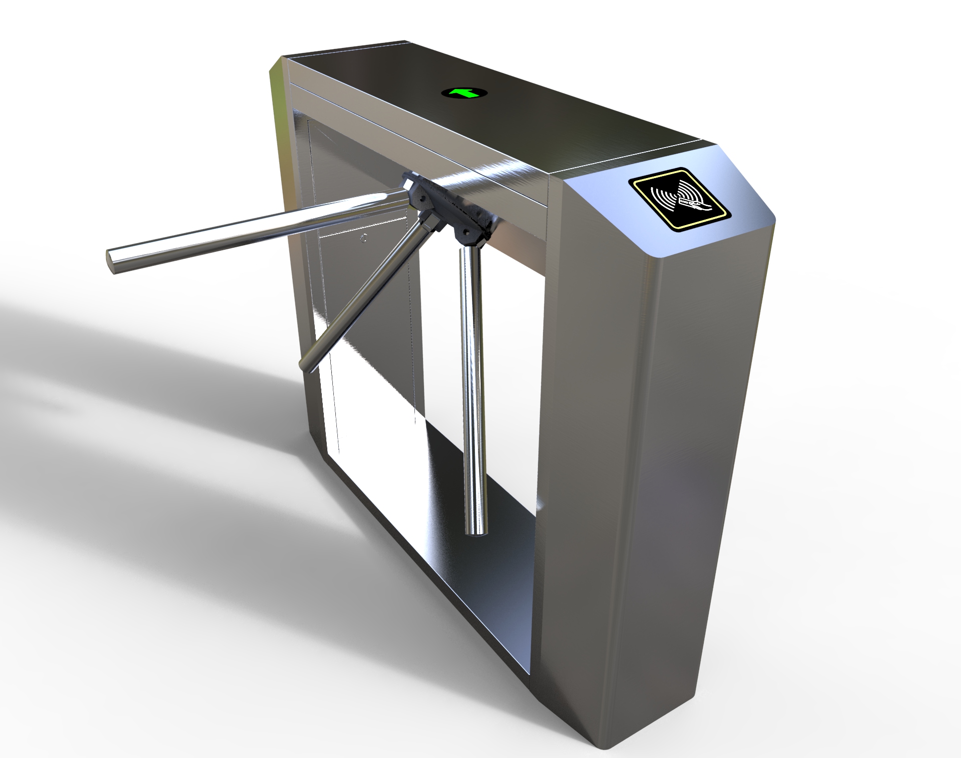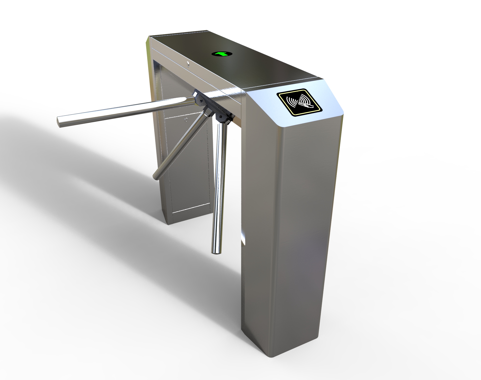 整個三輥閘產品外形采用SUS304不銹鋼板沖壓成型,造型美觀大方,防銹、耐用,能抵抗外力破壞。長方形機箱與通道閘桿構成的通道可為出入人員提供有序文明的通行方式,杜絕非法出入,并在緊急情況下快速控制落桿或收桿。
