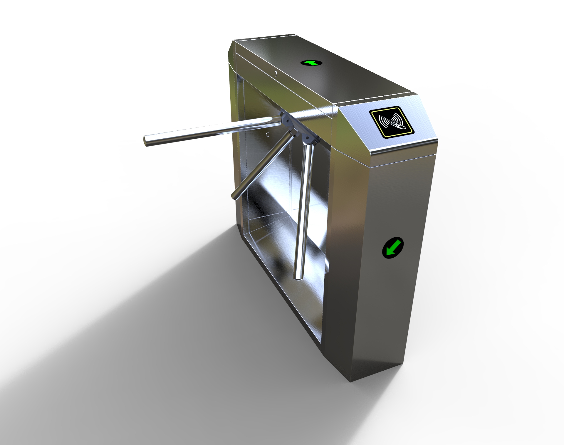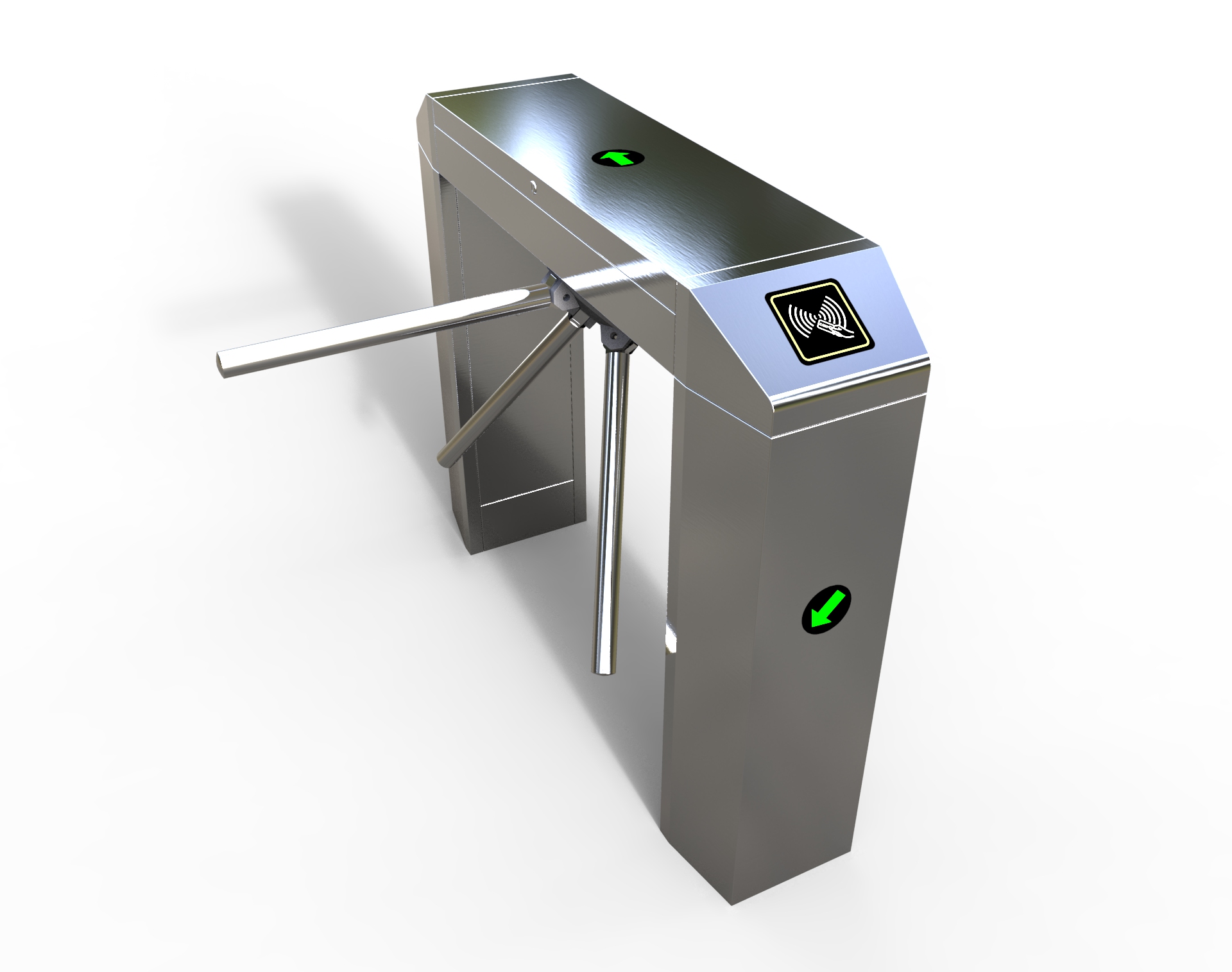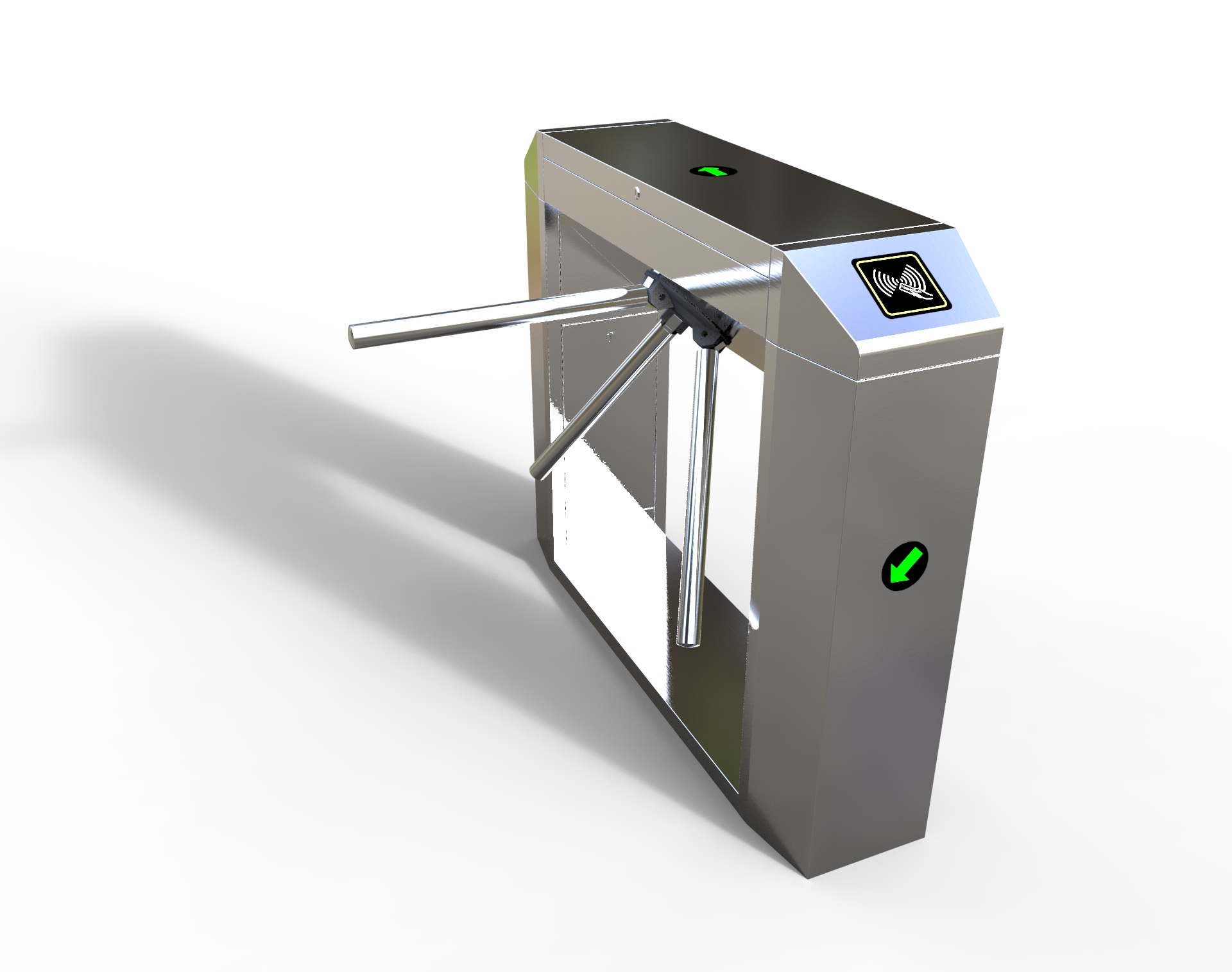 整個三輥閘產品外形采用SUS304不銹鋼板沖壓成型,造型美觀大方,防銹、耐用,能抵抗外力破壞。長方形機箱與通道閘桿構成的通道可為出入人員提供有序文明的通行方式,杜絕非法出入,并在緊急情況下快速控制落桿或收桿。