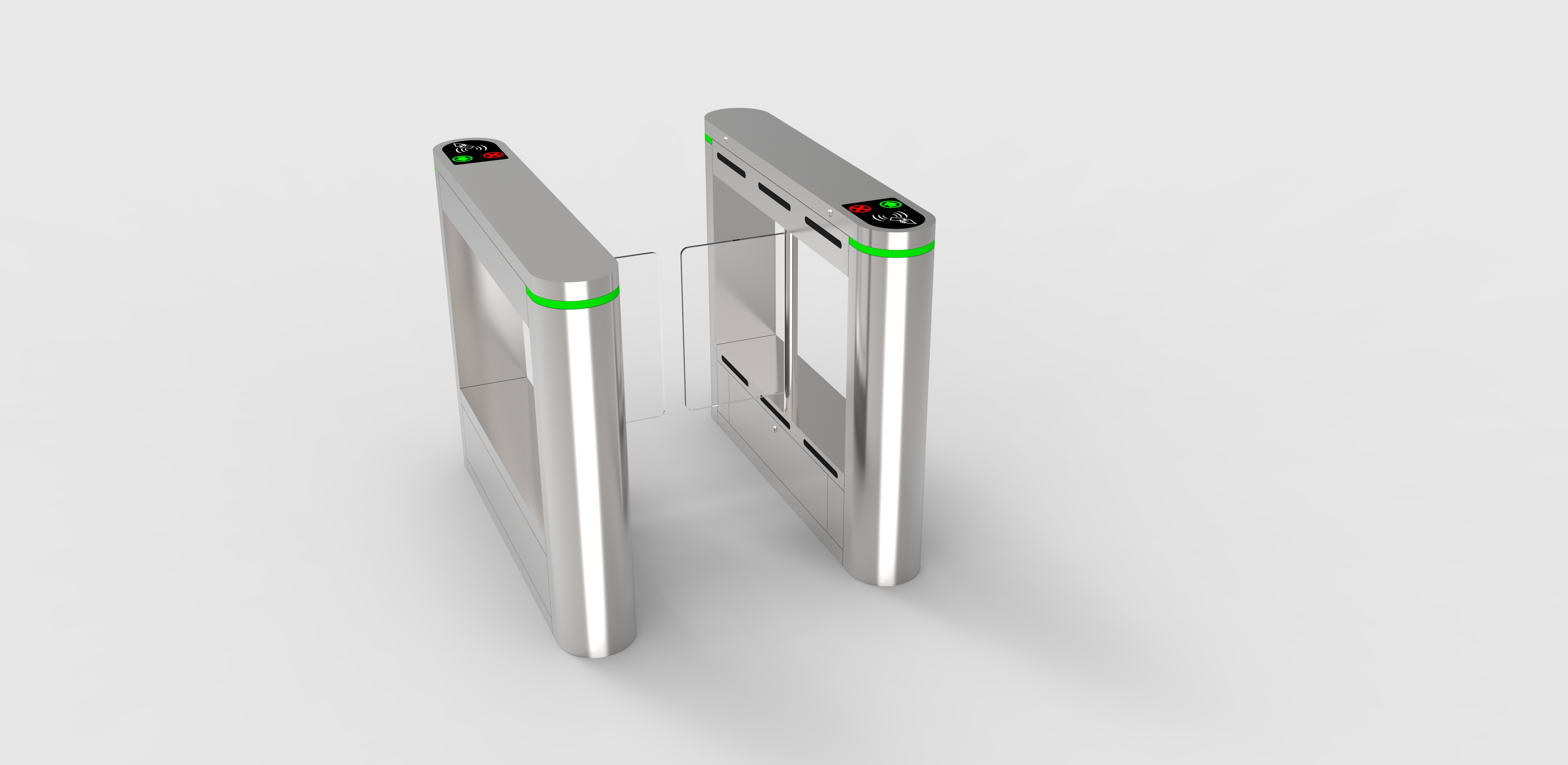 產品結構 整個產品外形板材采用304不銹鋼板材沖壓成型,防銹、堅固耐用.通道寬度:≤960.每個擺臂做到機箱外60公分.